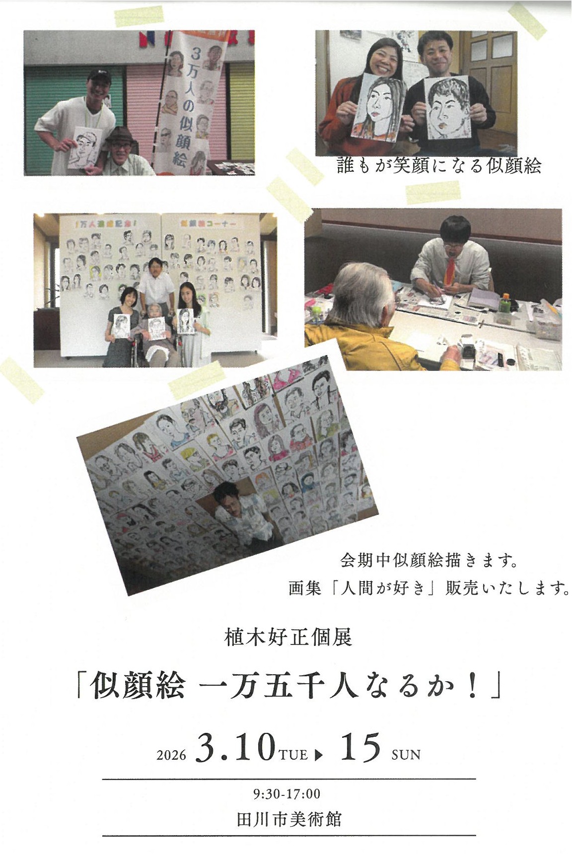 開催中ーこれから 植木好正個展 似顔絵 一万五千人なるか! 2026.3.10~3.15 期間 2026年3月10日(火)〜3月15日(日) 時間 9:30~17:30(入館 17:00まで) ※最終日 9:30〜16:30(入館 16:00まで) 会場 中央展示室 観覧料 無料 Post Share RSS