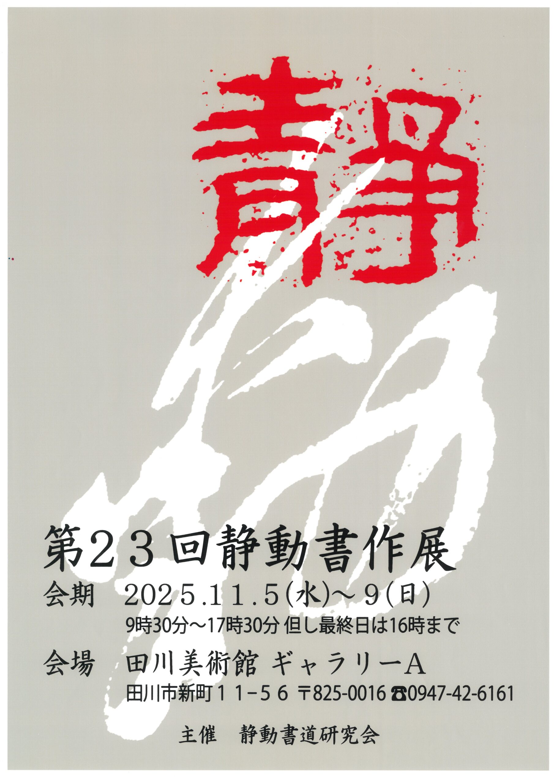 終了 第23回 静動書作展 2025.11.5~11.9 期間 2025年11月5日(水)〜11月9日(日) 時間 9:30~17:30(入館 17:00まで) ※最終日 9:30〜16:30(入館 16:00まで) 会場 ギャラリーA 観覧料 無料 Post Share RSS