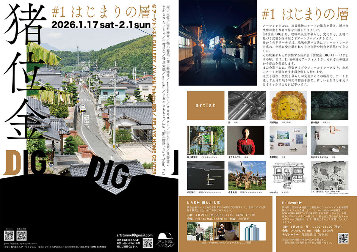 「コールマイン未来構想Ⅱ」展(12/7~2026/2/1)にあわせ、サテライトイベントとして、アーティストユニット「DIGDUG」(母里聖徳+長野聡史)、株式会社BOOK、NPO法人アーツトンネルのメンバーを中心に、地域とつながるイベントを開催します。