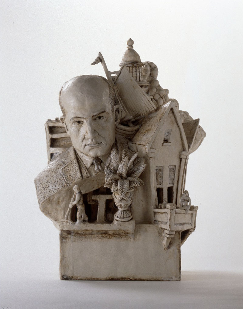 1990年代以降、立石は作陶に強い関心を抱くようになっていきます。1994年にはアトリエに作陶用電気釜を設置、以降、陶彫による立体作品を本格的に制作。絵本『じょうもんくんとたまご』(福音館書店、1994年)に登場する《動物シリーズ》より始まった陶彫作品は、その後、国内外の著名な画家たちをモチーフにした《アーティストシリーズ》へと展開していきました。一人のアーティストとその代表作、主要モチーフを独自の手法で再構成したその立体物は360度どの角度から見ても一切破綻のない見事な造形となっており、常に新しい視覚世界を切り拓いてきた立石ならではの作品と言えるでしょう。