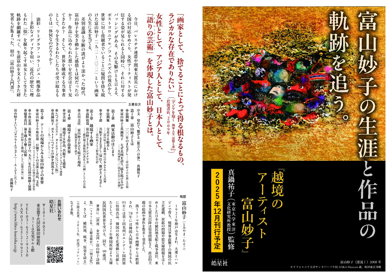 『越境のアーティスト 富山妙子』(皓星社)の出版を記念し、全5回の講座を開催いたします。本講座は真鍋祐子氏のご提案により、東京大学東洋文化研究所真鍋研究室のご協力を賜り開催する運びとなりました。